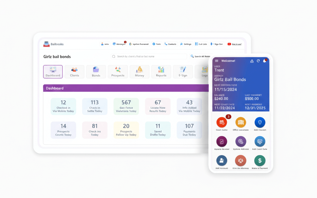 Our online payment portal is powered by Bailbooks, allowing you to make payments anytime from your phone, tablet, or computer.